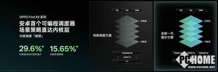 针对用户高频的游戏场景,传统调度方案因内核层对应用场景认知不足,导致 SoC 执行大量冗余指令,游戏长时间运行易出现帧率波动。全新一代 OPPO 潮汐引擎搭载安卓首个可编程调度器,让场景策略直达内核层,精准识别应用真实需求,为不同游戏场景定制高效调度方案,冗余指令执行至多减少 29.6%,同时大幅降低功耗至高 15.65% ,首次实现了游戏“持久满帧”。