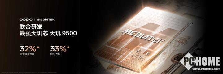 全新天玑 9500 使用台积电 N3P 工艺制造, CPU 单核性能提升 32% ,GPU 性能提升 33% 。 OPPO 即将发布的旗舰 Find X9 系列,将全系搭载OPPO与联发科联合研发的最强天玑芯天玑 9500,为用户带来最极致的性能体验。